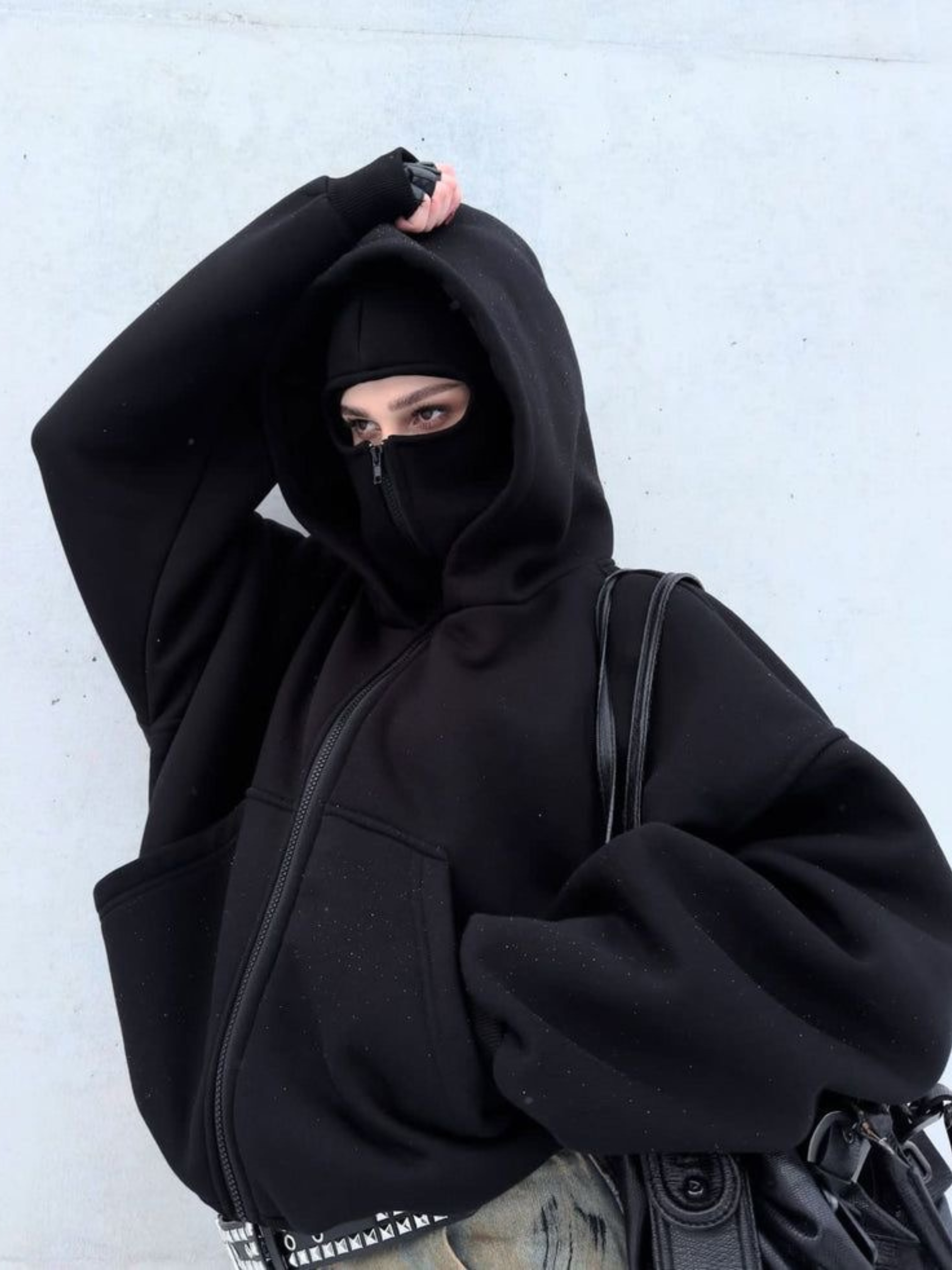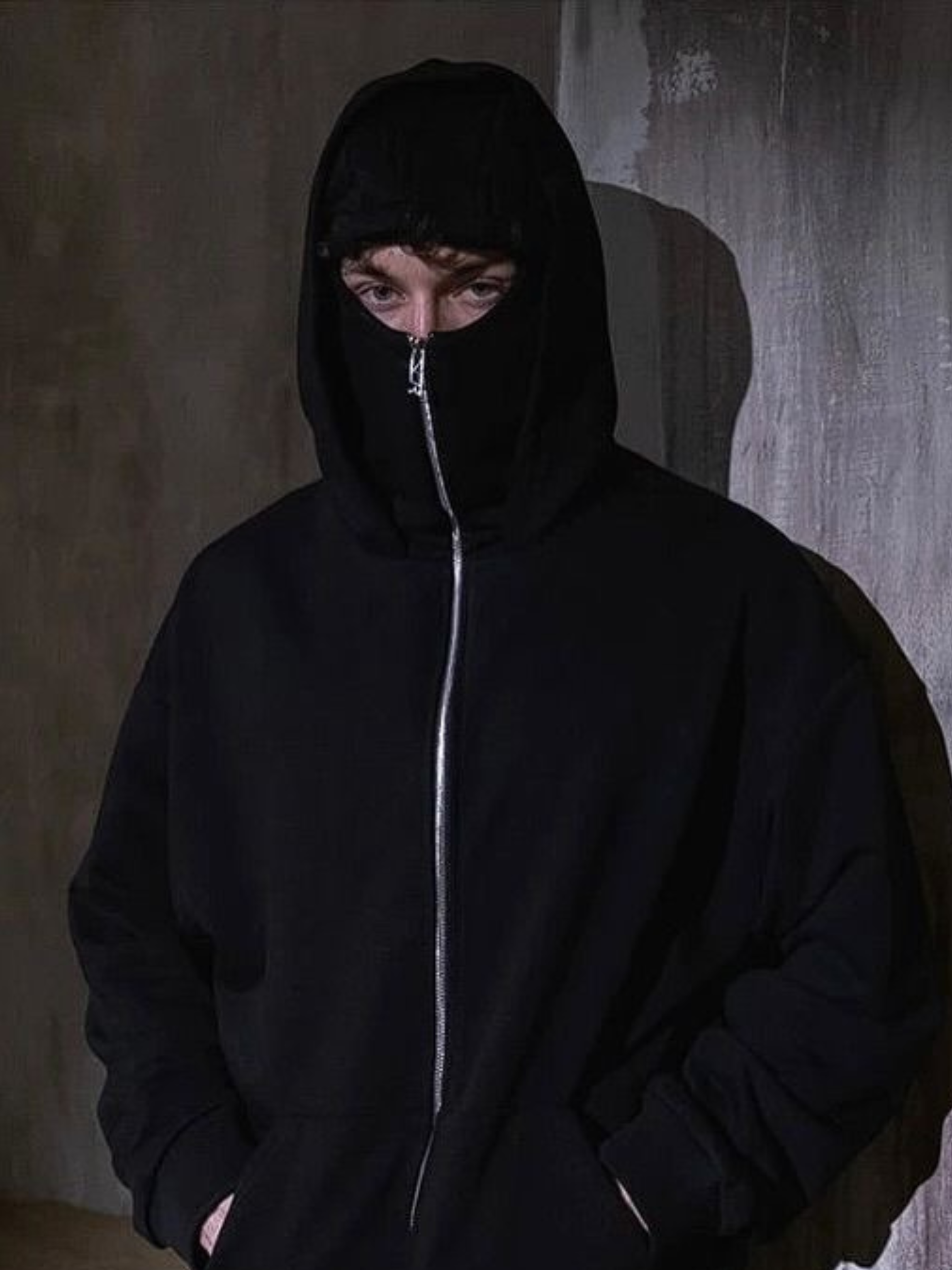 Nuestras sudaderas balaclava combinan estilo urbano y anonimato, inspiradas en la cultura callejera de Madrid.